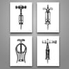 A set of 4 CJP art limited edition prints of antique corkscrews, clockwise from top left: