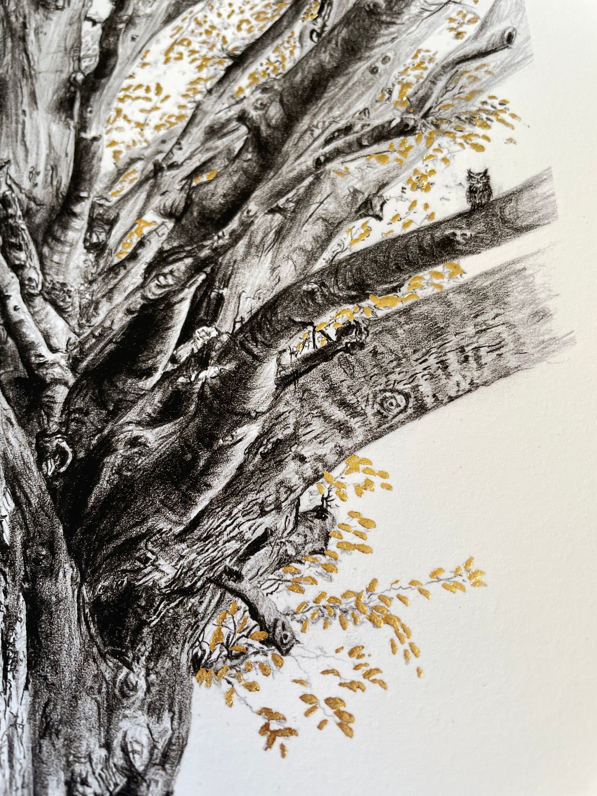 A hand gold leafed 24k AP, A3 in size. Stamped and signed.