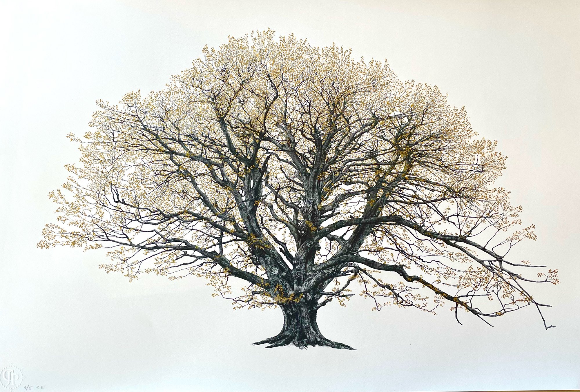 Full foliage gold leaf Special Editions available in A2, Large and Medium. Each leaf hand applied by the artist.
