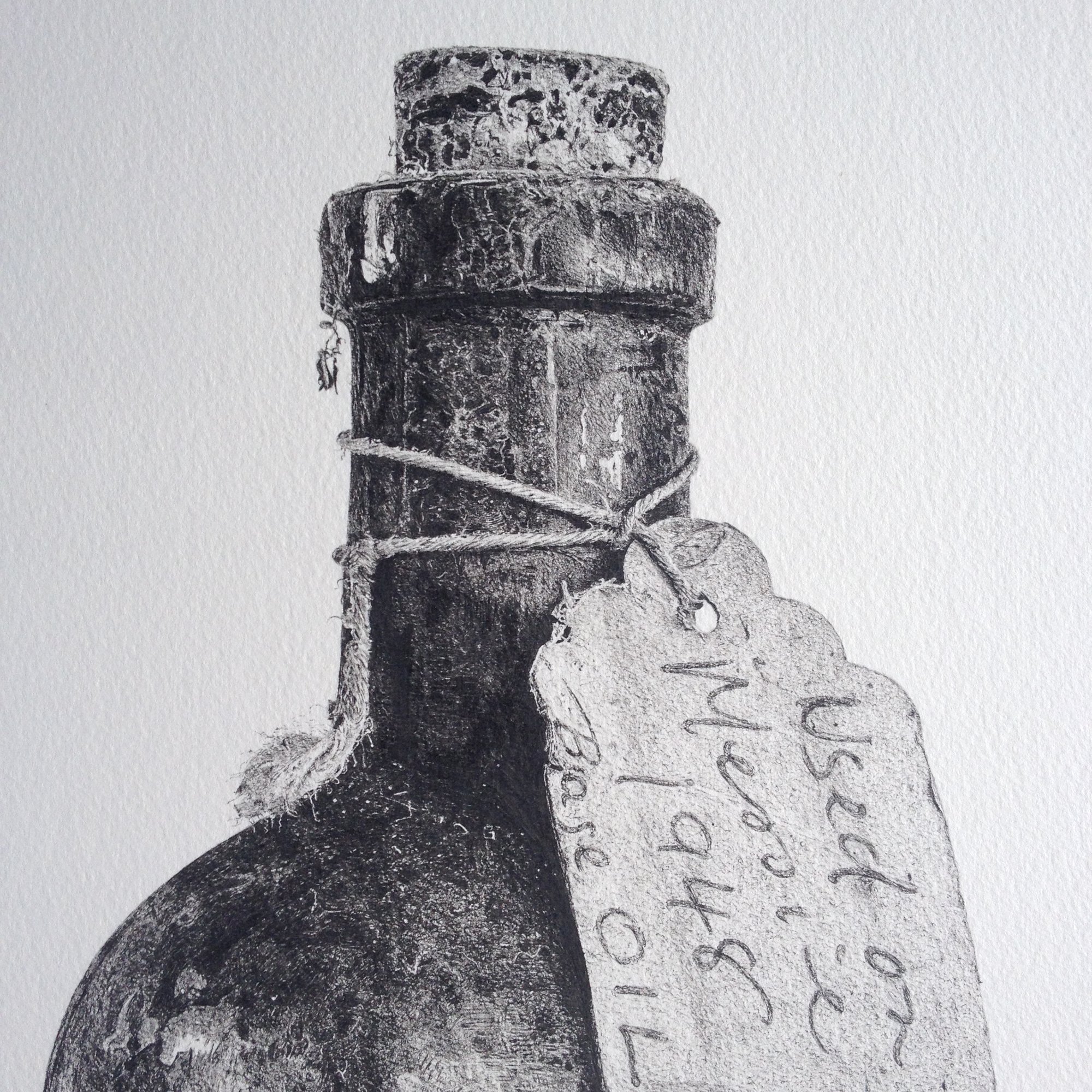 Limited edition wall art print from an original illustration by CJP of an old varnish bottle with an astounding history.