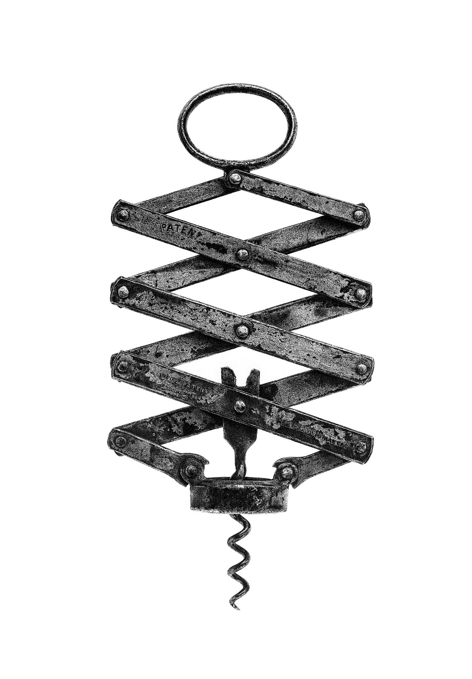 From an original illustration of "The Weir's I" old English corkscrew patented in 1884 to Marshall Weir and made by Heeley & Sons, this limited edition giclée print comes in 4 sizes, all printed on archival 100% cotton paper.